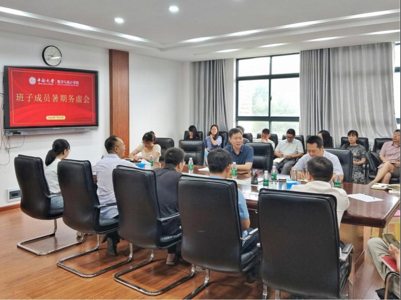 在数理楼362会议室组织召开班子成员暑期务虚会,汇报上半年工作、提出改进意见、统一思想认识,为下学期全面铺开各项工作提前安排部署。院领导班子成员、系主任、支部书记等参加会议,院党委书记胡玉玺主持会议。