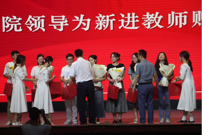 新生开学之际,恰逢第40个教师节即将来临。会上,学生代表为参会教师致敬献花,表达对老师们的感谢和祝福;院领导为荣休教师与新进教师赠送纪念品,感谢荣休教师的辛勤工作与卓越贡献,希望新进教师能传承师者精神,共助共推学校“双一流”建设。