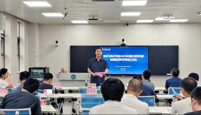 在数理楼245举办2025年海外优青申报暨国际青年学者湘江论坛。来自韩国IBS几何物理中心、德国马普所、圣卡洛斯联邦大学、普渡大学、香港中文大学、澳门大学等高校和科研机构的12名海内外优秀青年学者,电竞博彩网