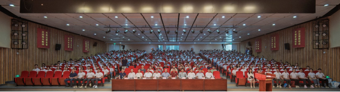 院士罗俊十年坚守防空洞实验室、精准测量引力常数的故事为例,勉励新生们在数学研究中要耐得住“心苦”、经得起寂寞,在学习研究中淬炼出坚韧与耐心。
