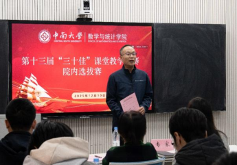 第十三届“三十佳”课堂教学竞赛院内选拔赛在数理楼245教室正式拉开帷幕。湖南大学彭豪副教授(第五届全国高校青年教师教学竞赛理科组一等奖)、中南大学刘再明教授、秦毅红教授、王小玲教授、谢斌教授五位校内外专家应邀担任评委,博彩网